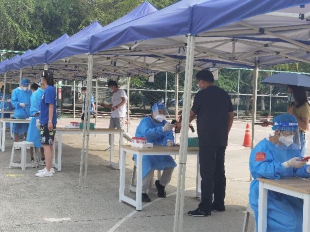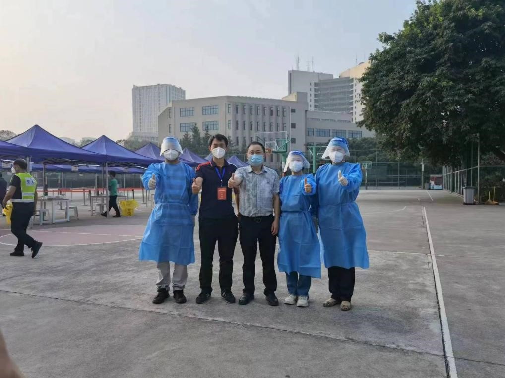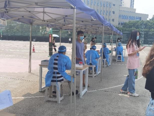 上午8点整九里校区的全员核酸检测工作准时开始,五位教师党员分别负责五条通道的核酸检测信息录入工作,学生们开始有序进场。历时五个小时整,在学校的统一部署下,在所有同学的高效配合下,在志愿者的辛苦付出下,九里校区的核酸检测圆满结束。