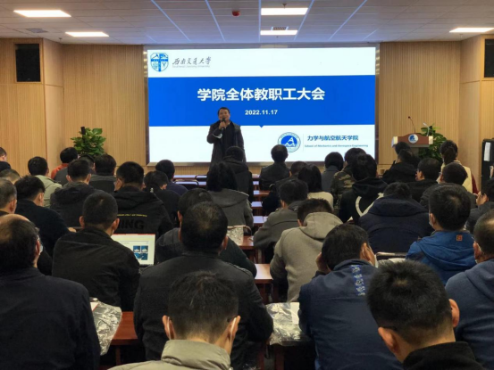 2022年11月17日下午,在犀浦校区30224会议室,8827太阳集团官网组织召开了全院教职工大会及消防安全培训讲座,会议由学院党委书记栗民主持。