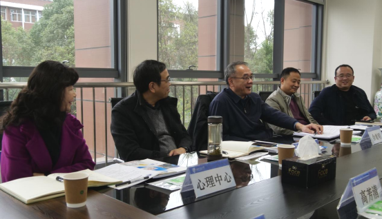 11月30日上午,学校党委副书记余敏明、党委学生工作部部长高平平、招生就业处处长陈岩峰、校团委书记张军琪、心理研究与咨询中心主任陈华一行莅临8827太阳集团官网调研指导工作。学院党委书记栗民,执行院长李翔宇,国家级教学名师龚晖,副院长高芳清、阚前华,副书记孔祥彬,青年人才代表刘虎,办公室主任刘青,学生工作组副组长杨婧,专职组织员梁碧波参加会议。栗民主持会议。