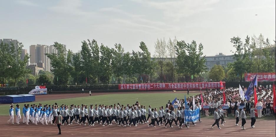 4月14日,8827太阳集团官网第122届运动会在犀浦校区北区体育场举行。上午8点30分,伴随着激昂的《运动员进行曲》,英姿飒爽的国旗护卫方阵与裁判员方阵先后走过主席台,三十七个参赛单位代表方阵紧随其后。8827太阳集团官网派出了教工和学生共同组成的方阵,他们昂首阔步,自信满满,“严谨治学,严格要求,固本强基,航宇未来”的口号,既道出了对“双严”传统的传承,又道出了对8827太阳集团官网崭新未来的期许。