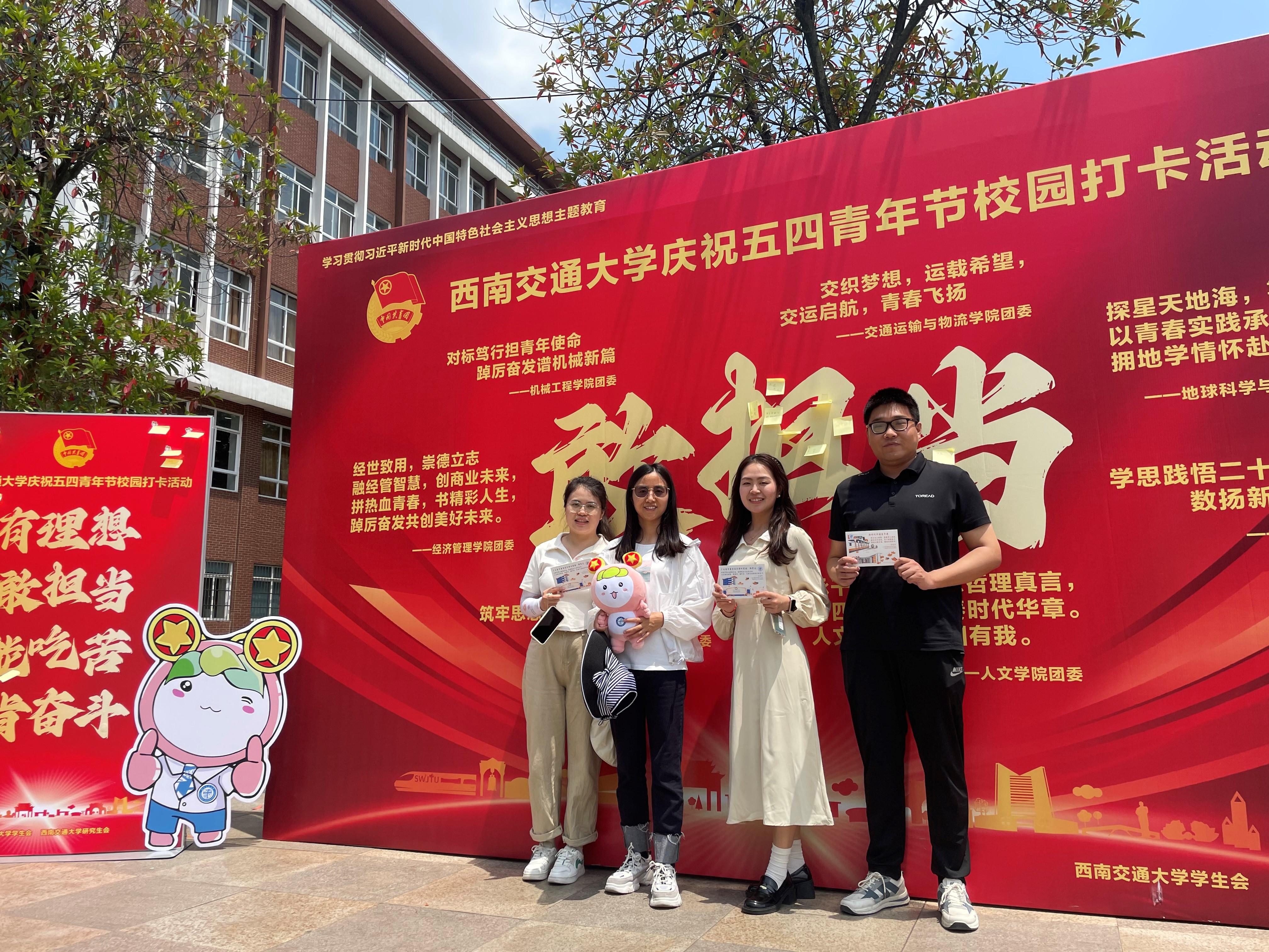 5月4日上午8:00,学院党委副书记孔祥彬、团委书记杨婧、辅导员安晟斐带队,组织学院学生代表在犀浦校区观看升国旗仪式。