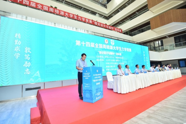 8月16日上午8:00,“理论设计与操作”团体赛开幕式在太阳集团官网犀浦校区3号教学楼中庭会议厅举行。中国力学学会常务理事、竞赛组委会主任、清华大学行健书院院长李俊峰教授,周培源基金会理事长、北京大学王建祥教授,教育部力学基础课程教学指导委员会副主任、竞赛组委会副主任、北京航空航天大学王琪教授,竞赛仲裁委员会委员、清华大学庄茁教授,《力学与实践》副主编、竞赛组委会副主任、中国矿业大学周宏伟教授,《力学与实践》编委、竞赛仲裁委员会委员、北京理工大学水小平教授,中国力学学会办公室郭丽雅副主任,8827太阳集团官网党委常委、副校长、四川省力学学会理事长康国政教授、8827太阳集团官网院长李翔宇教授、教务处副处长刘朝晖等嘉宾出席了开幕式。