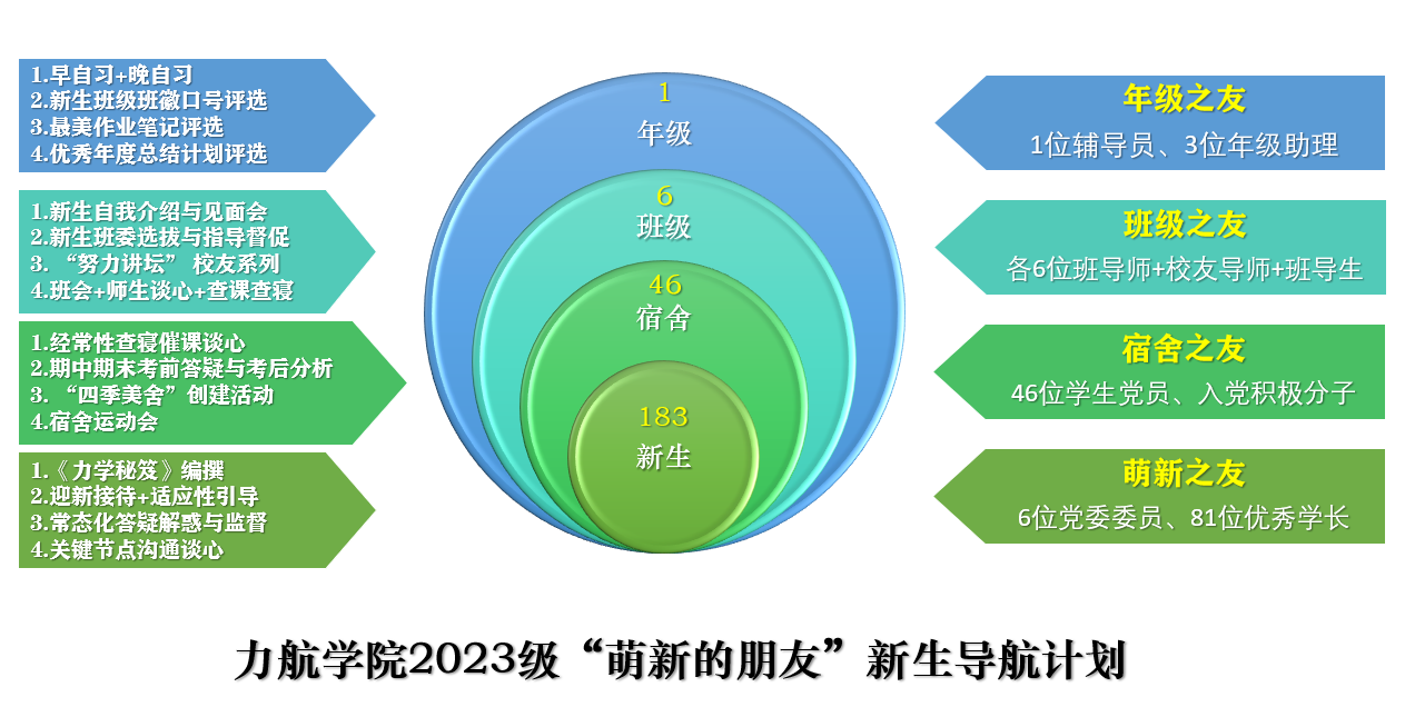 经过一系列组织工作,学院党委为2023级新生们配备了81位“萌新之友”提供入学适应及后续学习生活帮助,为新生宿舍一对一配备了46名学生党员或入党积极分子作为促进舍风建设的“宿舍之友”,还为6个新生班级分别配备了优秀的班导师、校友导师和班导生,多层次、全方位服务新生入学报到以及专业学习和校园生活。