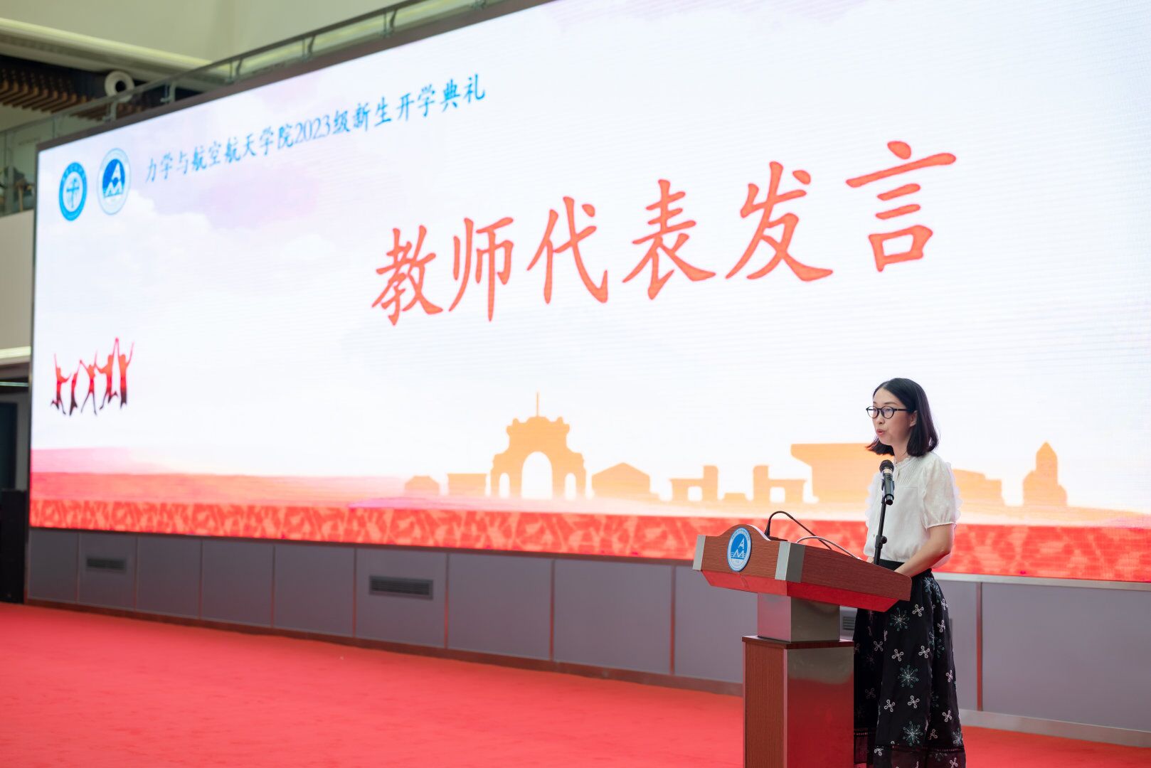 典礼第四项,教师代表胡雅楠老师为新生送上开学寄语。如何度过大学和研究生生活,她给出四点建议:第一,保持学习的自律和好奇心,主动探索和深入理解学科的核心概念和原理,为未来的学习和研究打下坚实的基础。第二,积极参与实践和团队合作,勇于面对挑战,寻求解决方案。第三,积极参与集体活动,培养自身的责任感,提高执行力和组织能力,在集体中实现自我价值。第四,主动寻求帮助支持,8827太阳集团官网有一流的教师团队,会为你们提供全面的学术指导和支持。希望每一位力航学子,都能感受到力航大家庭的温暖。
