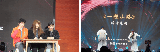 配音表演《百变配音》以欢快幽默的表演让欢乐的笑声萦绕全场;轮滑表演《一程山路》让轮滑与音乐碰撞,为晚会增添了一份别样色彩;话剧《先觉者》则生动刻画了先辈有志青年昂扬向上、追求理想的人生态度,厚重的历史感让同学们在安于欢乐的同时铭记先辈、烈士们的英勇。
