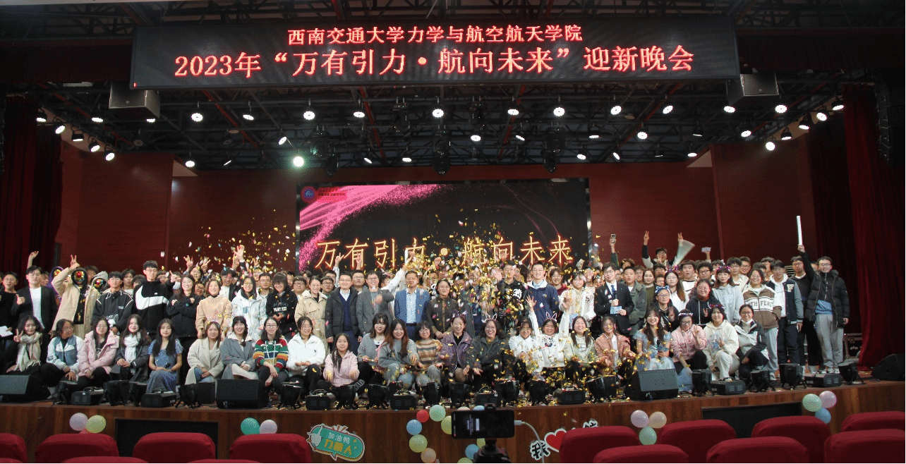 8827太阳集团官网2023年“万有引力·航向未来”迎新晚会于12月2日晚7点在一食堂三楼举行,参加本次晚会的有学院党委书记栗民、党委副书记孔祥彬、副院长阚前华、本科2023级班导师陈开卷、胡雅楠、许阳光以及学工组全体老师和学院200余名同学们。