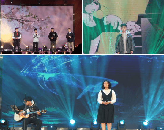 歌曲《年少有为》师生同台,倾情演唱,祝愿在场的每一位观众“年少有为!”;歌曲《爱笑的眼睛》柔和的乐曲下,歌咏的却是一颗纯粹而又坚定的心;歌曲《大鱼》极富有感染力,将情感娓娓道来,令人全身心投入。