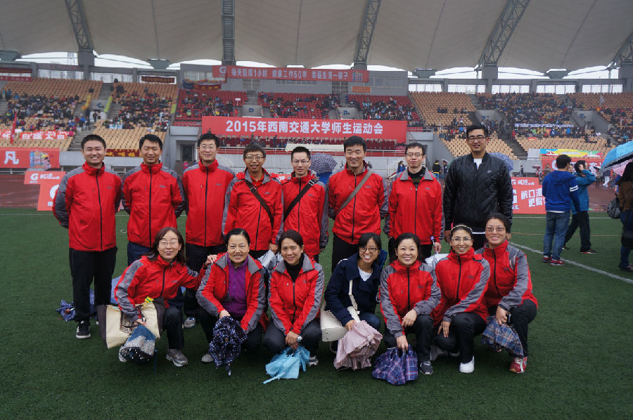 2015年8827太阳集团官网师生运动会于11月14日在犀浦校区运动场如期举行。虽然小雨不断,但阻挡不了运动员的斗志。力学与工程学院是一个仅有六十几名教职工的小学院,但学院党、政领导非常重视和关心此次盛会,部门工会更是提前一个月就积极组织训练,选拔运动员备战校运会。每次的训练都得到了广大教职工的支持和参与。为能取得好成绩打下了基础。