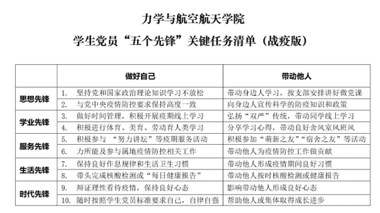 面对这样特殊时期特殊形势,结合学校党委相关要求和学院党委关于“先锋力行动”的部署,学院党委号召全体学生党员要在疫情期间线上学习中争做“五个先锋”。