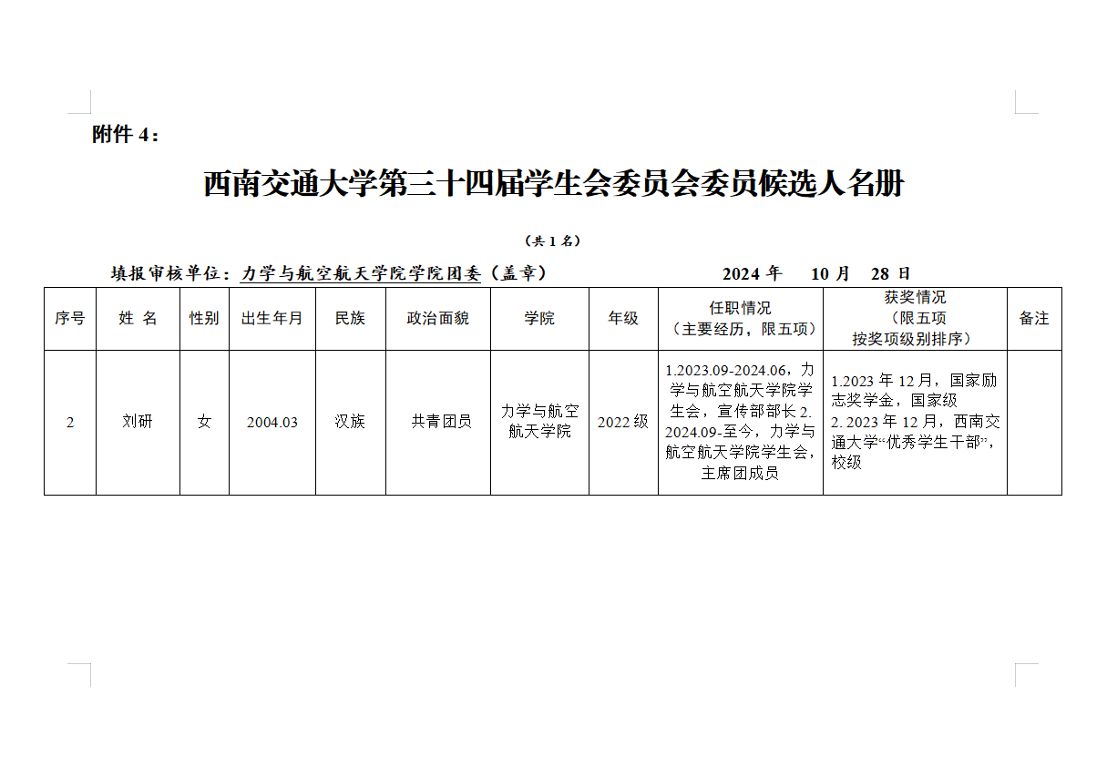 经班级(团支部)和学院学生会推荐,现将拟推荐参加8827太阳集团官网第三十四次学生代表大会的代表名单与委员名单进行公示。如有异议,请于11月1日12:00前向学院团委反映,地点:X30279,电话:66366796。