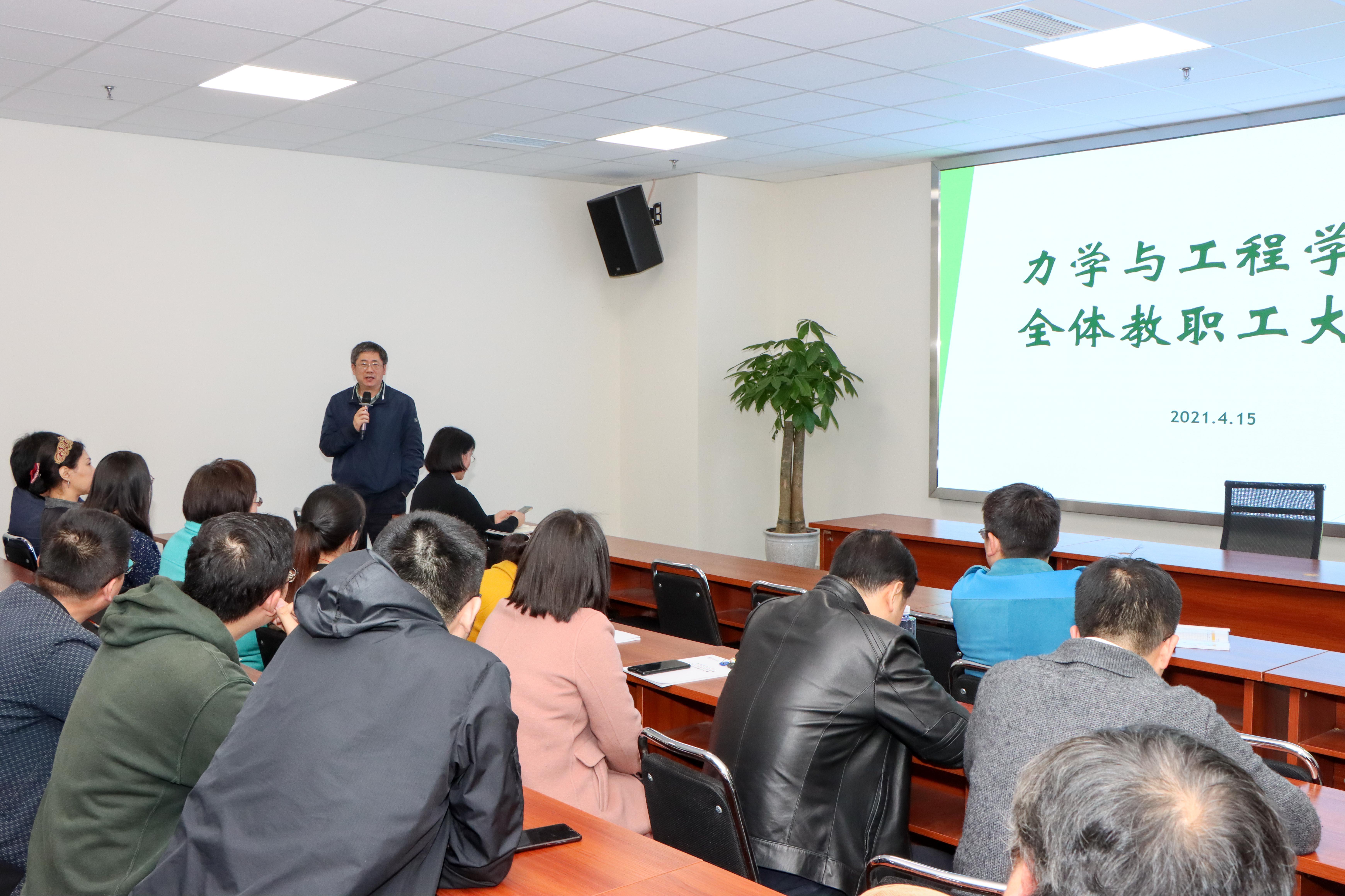 为了安排部署本学期学院工作和迎接学校第五轮巡察,2021年4月15日下午15:00,力学与工程学院在犀浦校区3号楼30224学术会议厅召开了全体教职工会议。会议由学院党委书记栗民主持。