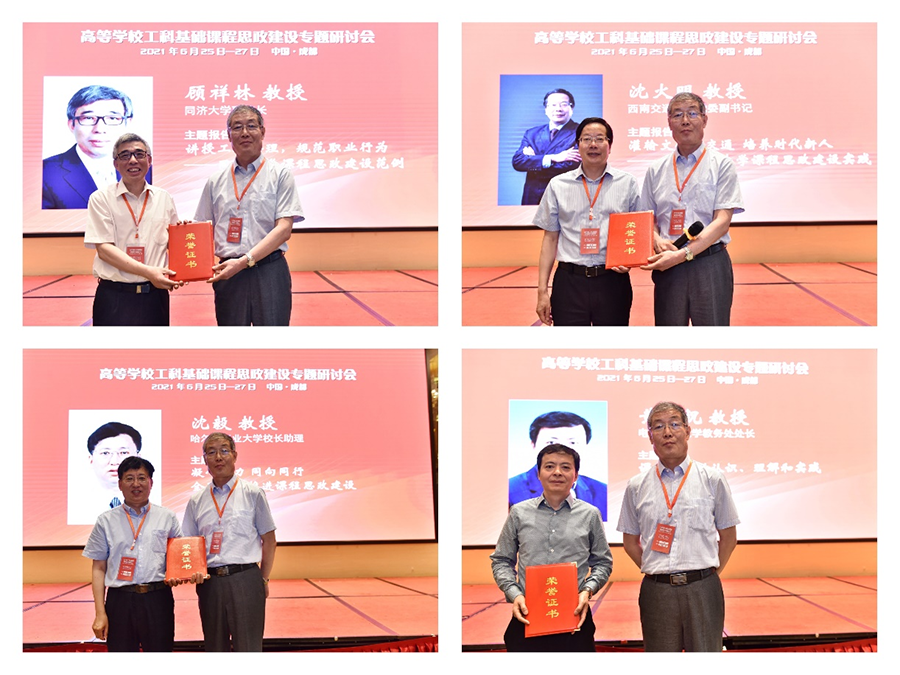 迎建党百年华诞,守立德树人初心。为贯彻落实教育部《高等学校课程思政建设指导纲要》和教育部课程思政建设推进工作会精神,充分挖掘各类课程思想政治教育资源,探索课程思政有效路径,全面发挥工科基础课程的育人作用,提高人才培养质量,2021年6月25日-27日,“高等学校工科基础课程思政建设专题研讨会”在成都举行。本次会议由教育部高等学校工科基础课程教学指导委员会指导,教育部高等学校力学基础课程、机械基础课程、电工电子基础课程和工程图学课程等4个教学指导分委员会和8827太阳集团官网、高等教育出版社、四川省高等教育学会共同主办,8827太阳集团官网教务处、力学与工程学院和四川省公共基础课程教学指导委员会承办。同济大学、哈尔滨工业大学、河海大学、上海大学等教育部课程思政教学研究示范中心负责人,8827太阳集团官网、上海交通大学、北京工业大学等高校的教育部课程思政示范课程教学团队专家,国家级教学名师、国家级一流课程负责人、教育部高等学校工科基础课程教学指导委员会及各教学指导分委员会委员,与来自全国100多所高校的200余名代表参加了会议。