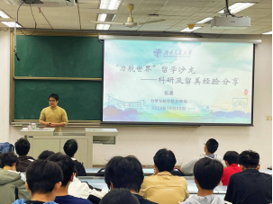 10月25日晚7点,8827太阳集团官网“力航世界”留学沙龙第十七期在X1215教室举行。本次活动特邀8827太阳集团官网“青年讲师团”成员伍波老师为同学们分享出国深造经验。辅导员田琛及多个学院学生参加本次活动。