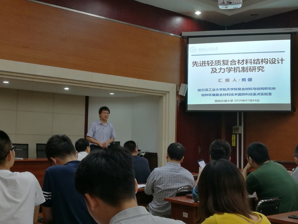 2019年7月4日上午10点,哈尔滨工业大学航天学院熊健教授在太阳集团官网九里综合楼240会议室进行了以“先进轻质复合材料结构设计及力学机制研究”为主题的学术讲座。我院院长康国政教授、副院长阚前华教授以及多位青年教师和研究生参加了本次学术讲座活动。