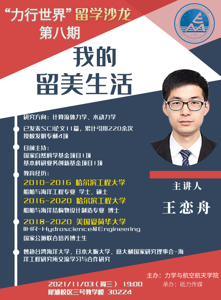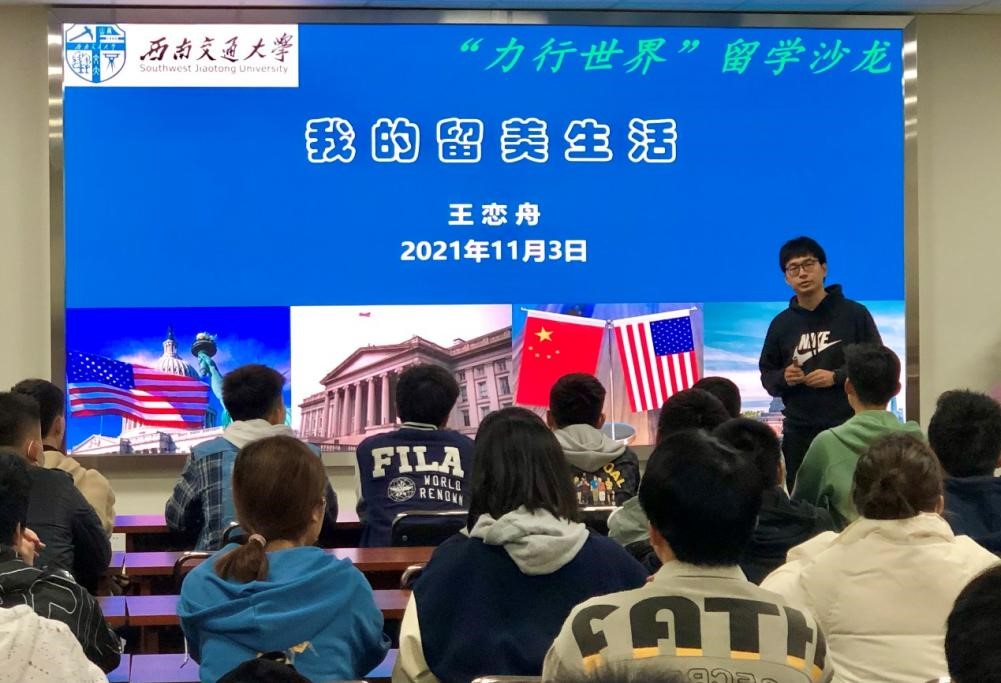 11月3日晚,8827太阳集团官网“力行世界”留学沙龙活动第八期活动在犀浦校区X30224会议室举办。本次沙龙邀请学院青年教师王恋舟老师担任主讲嘉宾,为同学们分享自己的留美生活。活动由张容华老师主持。