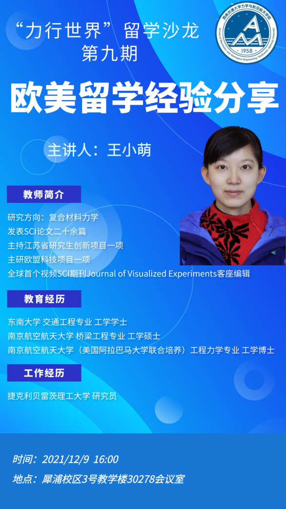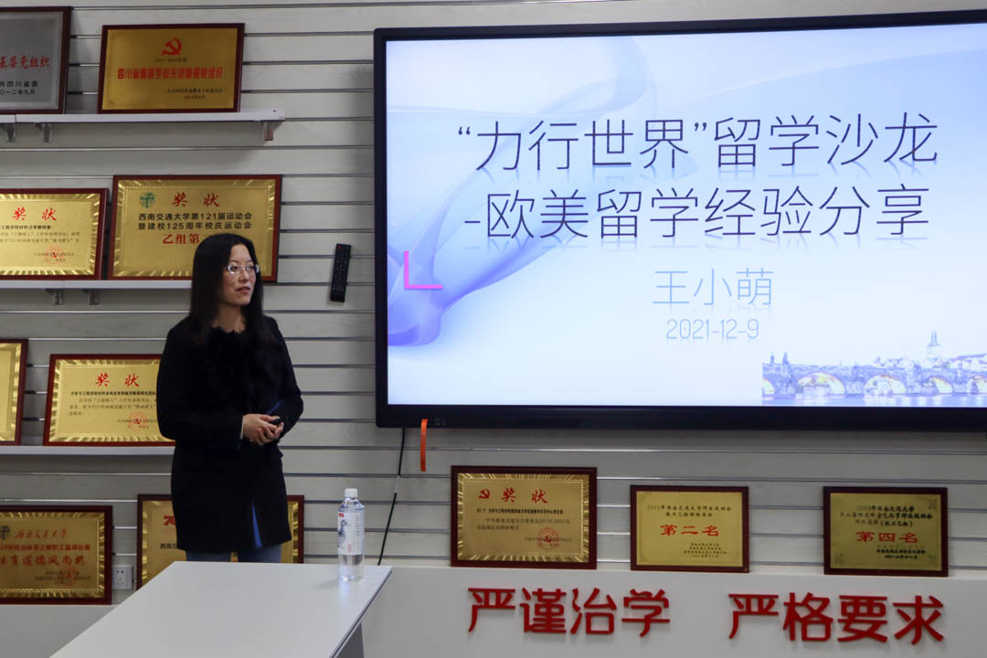 12月9日,“力行世界”留学沙龙第九期活动在犀浦校区3号教学楼30278会议室进行,本次沙龙邀请学院青年教师王小萌老师向同学们分享了自己的欧美留学经验。活动由古定翱老师主持。