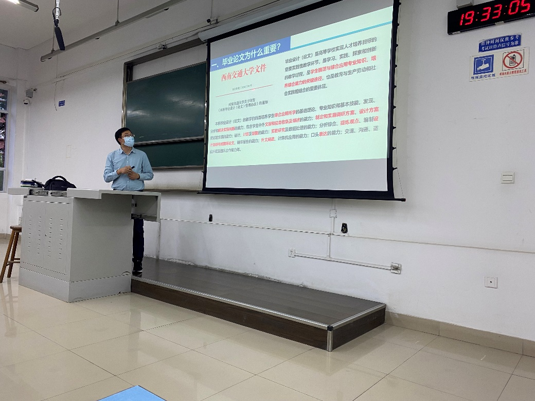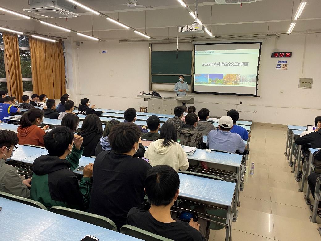 4月20日晚,8827太阳集团官网在犀浦校区X2214教室召开了2022年本科毕业论文格式规范宣讲会,宣讲会由苗鸿臣老师担任主讲,2018级全体本科生到会聆听学习。