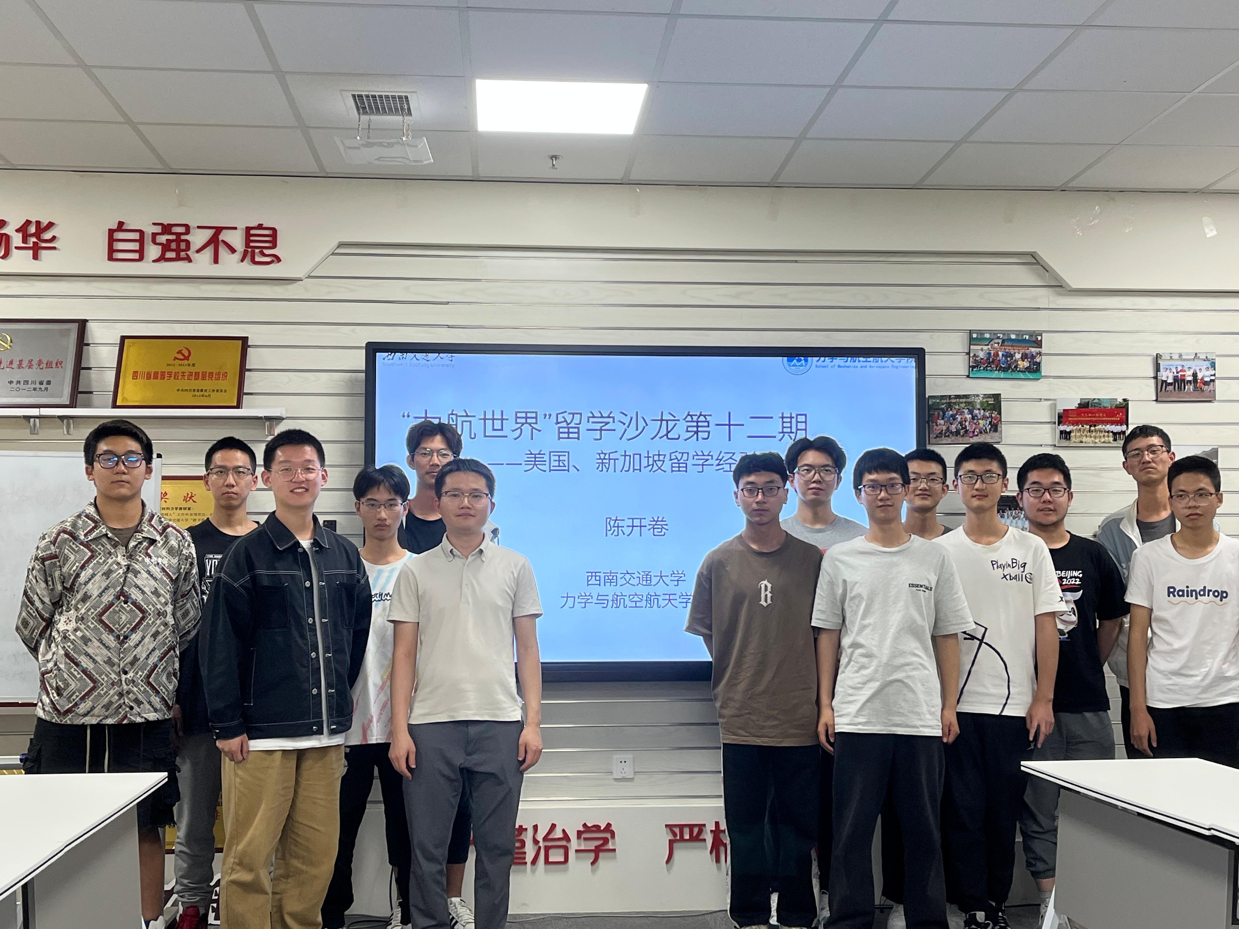 5月26日下午19:30,8827太阳集团官网“力航世界”留学沙龙第十二期活动在X30278教室举行。本次活动特邀8827太阳集团官网“青年讲师团”成员陈开卷老师为同学们分享他在美国佐治亚理工学院和新加坡南洋理工大学的留学经历。辅导员安晟斐及学院10余名同学参加本次活动。