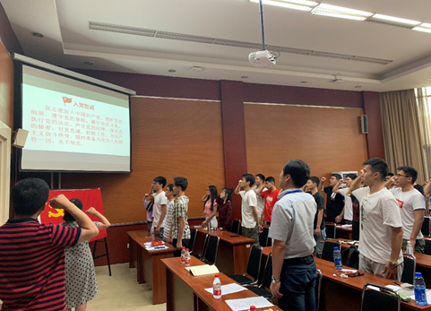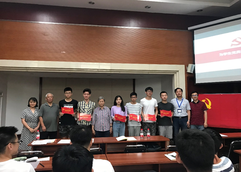 最后,学院老领导、老教授高淑英、陈虬老师为学生党员宿舍(工作室)代表授牌,高淑英老师寄语学生党员们:年轻人们,接力棒交到你们手里啦,你们要发挥好先锋模范作用!随后,学院栗民书记带领全体党员集体重温了入党誓词。