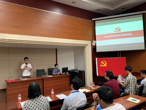 然后,学生党员代表王潇飞发言,他结合自身经历和“五个先锋”的具体内涵探讨了作为一名学生党员如何发挥自己的先锋模范作用。他表示作为当代的在校学生党员,要从自身抓起,从小事做起,在不断地学习中完善自我,同时积极帮助身边人,全心全意为同学服务,以实际行动发挥党员的先锋模范作用。