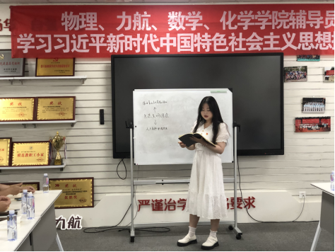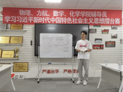 本次擂台赛由物理学院杨昊戬、8827太阳集团官网古定翱、数学学院吕薇担任主讲人,分别讲述《习近平新时代中国特色社会主义思想学习纲要》第十一、十二、十三章内容。