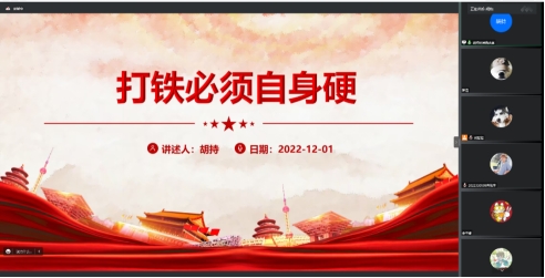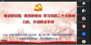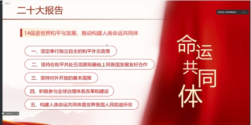 12月1日下午,8827太阳集团官网和外国语学院联合开展了题为“奋进新征程 勇担新使命 学习党的二十大精神”的联合学讲活动,活动由8827太阳集团官网研究生第二党支部、第一党支部、研究生会和外国语学院专硕党支部、研究生会联合开展。活动采用腾讯会议形式,胡持和赵英治两位研究生党员担任主讲,8827太阳集团官网研究生会何智超同学担任主持。