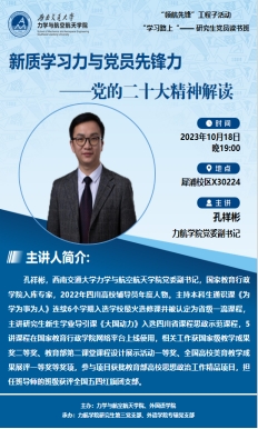10月18日晚,读书班活动在犀浦校区X30224会议室举行,本次活动邀请8827太阳集团官网党委副书记孔祥彬老师以“浅谈新质学习力与党员先锋力——党的二十大精神解读”为题开展了主题党课。