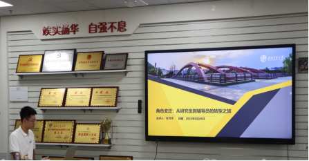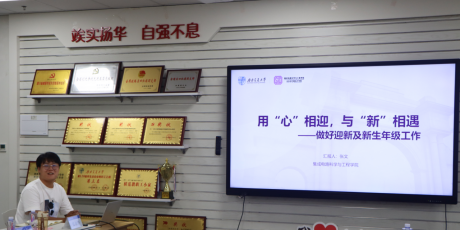 新生辅导员唐珂、杜芃岑、张文分别做了题为《推动“萌新的朋友”新生导航计划,构建学风建设长效机制》《角色变迁--从研究生到辅导员的转型之旅》《用“心”相迎,与“新”相遇,做好迎新及新生年级工作》的报告,分别介绍了作为新生辅导员的感悟以及迎新季的工作安排。