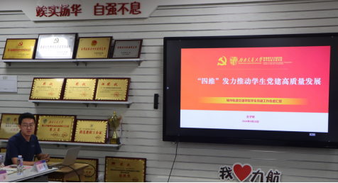 王子琦做了题为《“四维”发力推动学生党建高质量发展》的工作报告,介绍了智慧学院不断规范党员发展工作、凝练党建成果的做法以及新学期的学生党建工作计划。