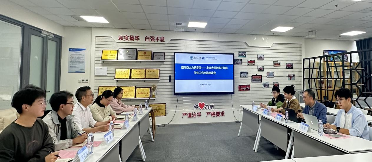 最后,双方就力航“五力育人”体系、辅导员工作室建设、如何为学生提供更多更优服务等方面展开了热烈的讨论。袁铭表示:听完报告,强烈地感受到西南交大8827太阳集团官网学生工作“基础工作扎实,增量工作有效,杂项工作细致,特色工作亮眼”,希望将一些成熟工作模式和方法引进到上海大学微电子学院,加强两院未来的交流合作,共同培育时代新人。