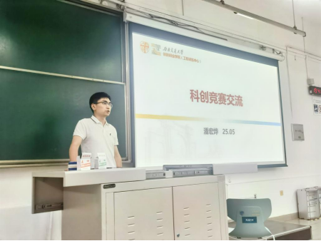 首先,潘宏烨老师依次介绍机械创新设计大赛、全国大学生节能减排社会实践与科技竞赛、中国大学生工程实践与创新能力大赛等各种科创竞赛,并提醒同学们一定要在本科阶段注重科研能力的提升,为硕士研究生的科研奠定基础。