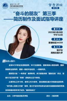 2025年5月28日下午16:00,8827太阳集团官网特邀信息学院杨子仪老师在犀浦校区X4359为我院大三本科生及研二研究生带来了一场主题为“简历制作及面试指导”的“奋斗的朋友”就业深造服务计划专题讲座。讲座聚焦学生需求,系统性地从时间规划、简历撰写到面试技巧进行了经验分享,干货满满。