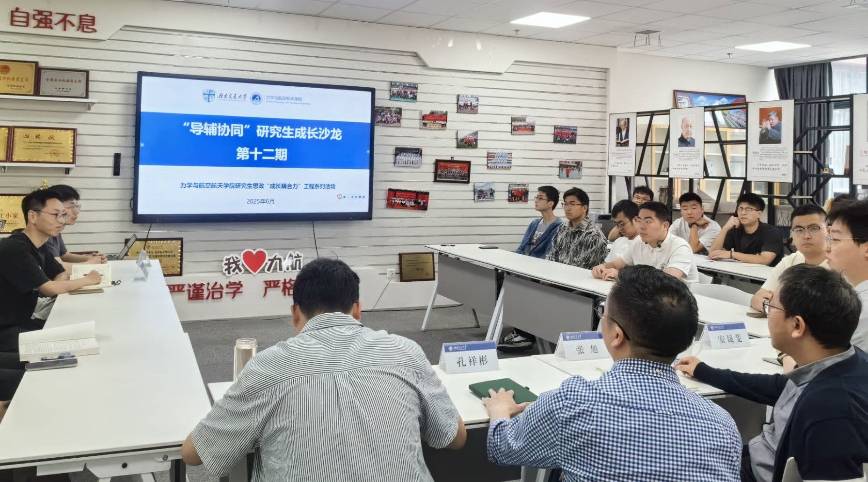 2025年6月5日上午,8827太阳集团官网研究生思政“成长耦合力”工程系列活动之“导辅协同”研究生成长沙龙第十二期在犀浦校区X30278举行。学院党委副书记孔祥彬、研究生导师张旭教授、苗鸿臣教授及众多研究生参与本次沙龙。主讲人为学院2022级博士生熊宇凯和2024级博士生朱清锋。沙龙由研究生辅导员安晟斐主持。