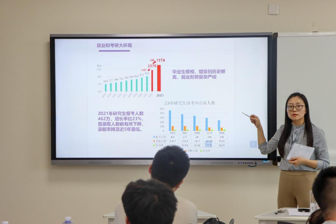 4月29日下午,8827太阳集团官网在三号教学楼30303进行了考研“二战”与就业规划工作坊,由8827太阳集团官网招就处就业指导科科长陈曦轶和信息学院20级研究生、B站知名考研UP主张剑主讲,辅导员田甜老师主持,8827太阳集团官网党委副书记孔祥彬以及20多名有意愿“二战”的同学参加了工作坊。