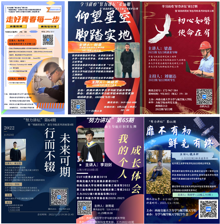 为了加强2022年级学生大学学习生活适应和生涯规划教育,面对全院强化学生先进典型示范,8827太阳集团官网在2022年暑假启动了“萌新的朋友”新生导航计划,特邀6位优秀就业校友(班级就业导师)、6位优秀深造校友(班级深造导师)、6位在读高年级学生骨干(班导生),成立“班级之友”团队,面向全院学生开展“努力讲坛”讲座,介绍自己在大学期间的生活学习、研究生阶段的科研经验、深造就业相关心得等内容。