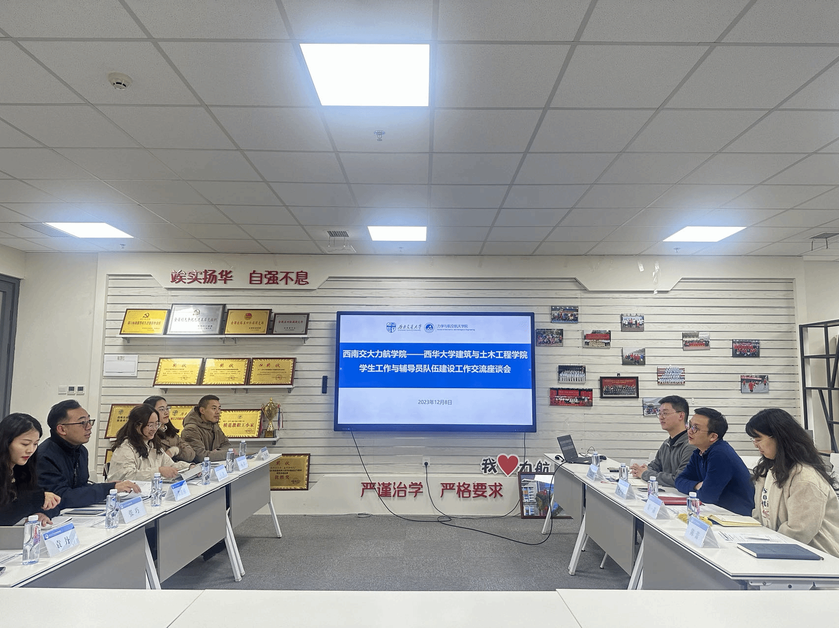 12月8日下午, 西华大学建筑与土木工程学院党委副书记黄佳祯一行来院调研交流,学院党委副书记孔祥彬、辅导员姜一菡、辅导员陈蕾、辅导员安晟斐参加了本次交流座谈会。