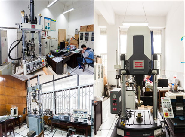 实验室目前建有实验大厅2个、面积300m2。另有,11个实验分室,总面积近4000m2,拥有材料与结构强度、振动及安全评估相关的各类先进设备系统,其中包括多吨位MTS材料拉扭实验测试系统、超声疲劳实验系统、高频疲劳试验机、高速蠕变试验机、PSV300激光扫描测振系统、VS2000 2T推力电磁振动台、空气动力学试验系统、LMS振动莫泰测试与分析系统、UCAM静态数据测试系统、振动与噪声测试分析系统、燃料组件力学性能综合测试平台、非接触式全场应变测试系统、原子力显微镜、高速视觉测试系统等高精尖仪器设备以及结构数值仿真计算分析平台。